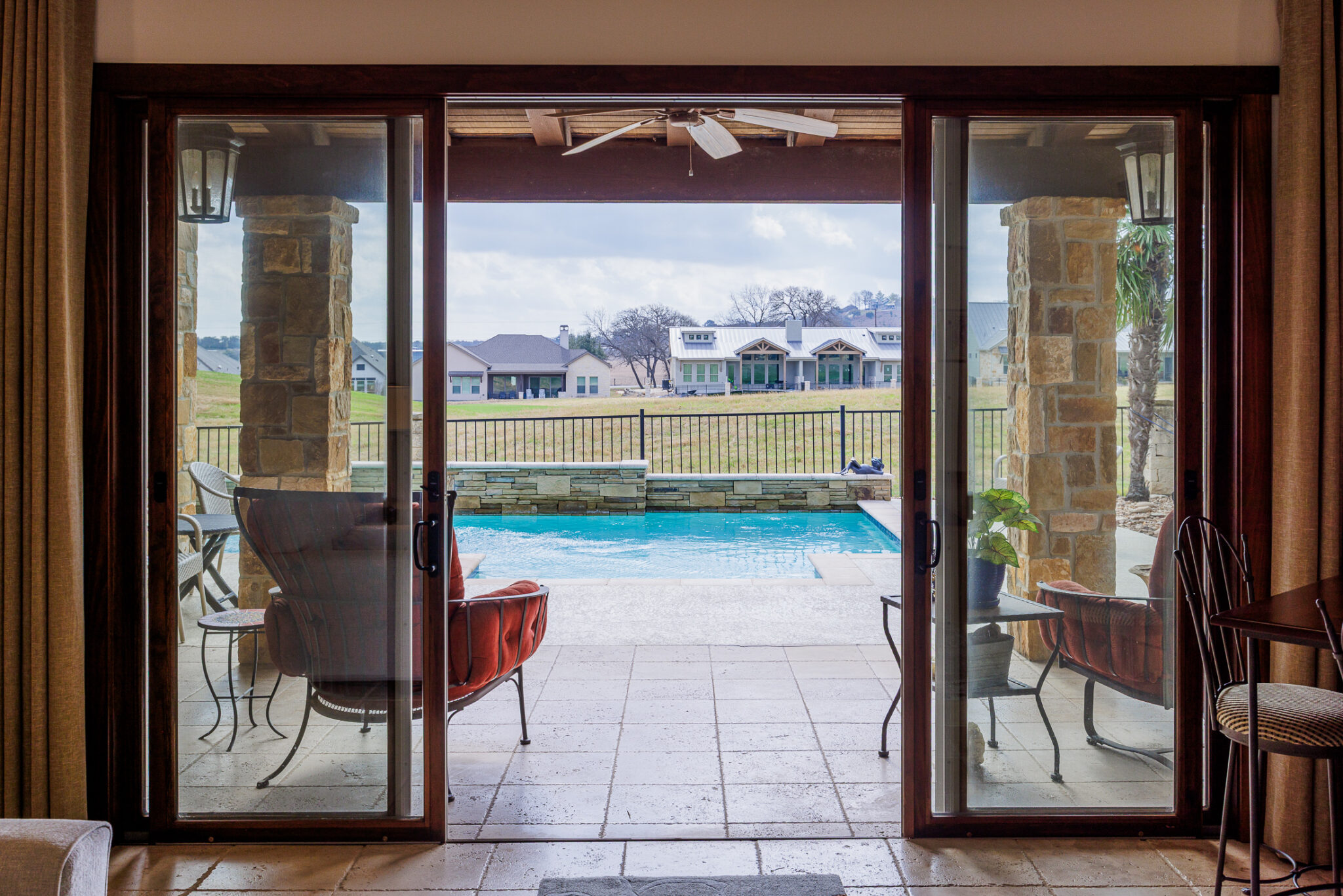 Immaculate garden home with large courtyard area, separate casita and beautiful pool in the backyard overlooking the golf course and surrounding hill country and enjoying perfect SE exposure! If you are looking for low-maintenance and move-in ready, this home is for you. Beautifully crafted with flagstoned courtyard, travertine and wood floors, cherry cabinets, granite counter tops, wood beams, wood interior doors, built in file drawers, and large walk-in closets. Kitchen features wine fridge, new oven, warming drawer, jenn-air cooktop and pull-outs in cabinets. Casita is 3rd bedroom and makes wonderful guest suite with beverage fridge, breakfast bar, full bath and separate a/c unit. Backyard is resort-like with beautiful pool with fountain and swim-up seating.
